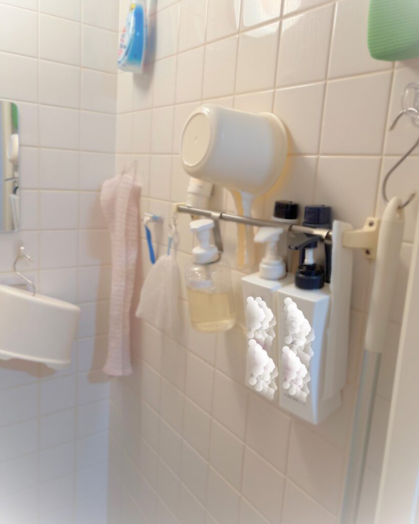床や棚にシャンプーなどを置くと、どうしてもヌメリがつきやすかったりするので、